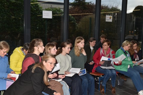 Die Gäste erhoben sich zu den Fragen, zu welchen Kirchengemeinden sie gehören entsprechend von den Stühlen ebenso wurde nach der Geschwindigkeit, mit der jeder Einzelne im Pastoralen Raum unterwegs ist, gefragt.