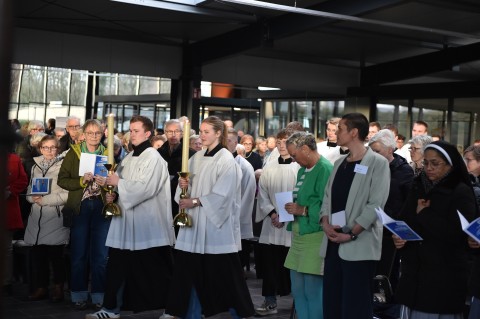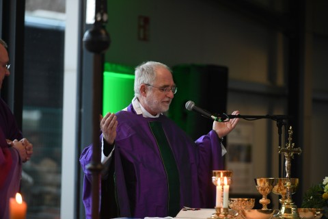 Fragen der Gäste, die über einen QR-Code gestellt werden konnten, wie auch klassisch mit Stift und Papier, wurden vom Leitungsteam direkt beantwortet. Die Frage, ob denn auch zukünftig weitere gemeinsame Gottesdienste geplant seien, wurde von Pfarrer Ende mit den Worten „er sei für alles offen“ beantwortet.