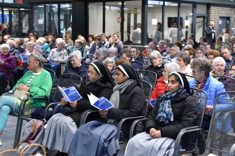 Eine passende Wortmeldung einer Besucherin gab es zum Ende der Fragerunde. Sie lobte ausdrücklich die gute Wahl der Location. So wurde keine Kirche in den Mittelpunkt gestellt, sondern ein neutraler Ort, wo sich alle Gemeindemitglieder gut abgeholt fühlen konnten. Diese Meinung wurde von den Zuhörern mit lautem Beifall geteilt.