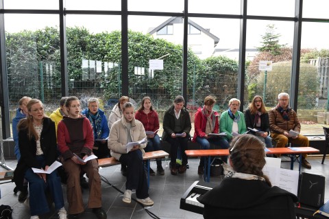 Die Gäste erhoben sich zu den Fragen, zu welchen Kirchengemeinden sie gehören entsprechend von den Stühlen ebenso wurde nach der Geschwindigkeit, mit der jeder Einzelne im Pastoralen Raum unterwegs ist, gefragt.