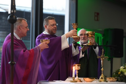 Fragen der Gäste, die über einen QR-Code gestellt werden konnten, wie auch klassisch mit Stift und Papier, wurden vom Leitungsteam direkt beantwortet. Die Frage, ob denn auch zukünftig weitere gemeinsame Gottesdienste geplant seien, wurde von Pfarrer Ende mit den Worten „er sei für alles offen“ beantwortet.